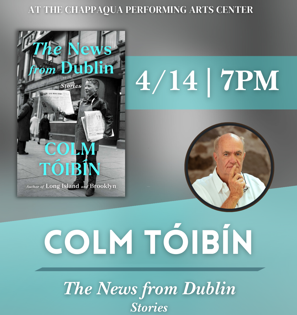 Colm Tóibín will be discussing his newest short story collection, The News From Dublin: Stories, featuring tales of longing, family, and life away from home.